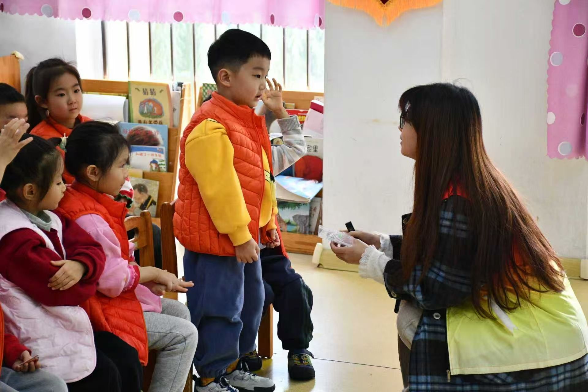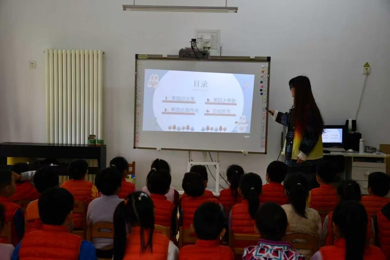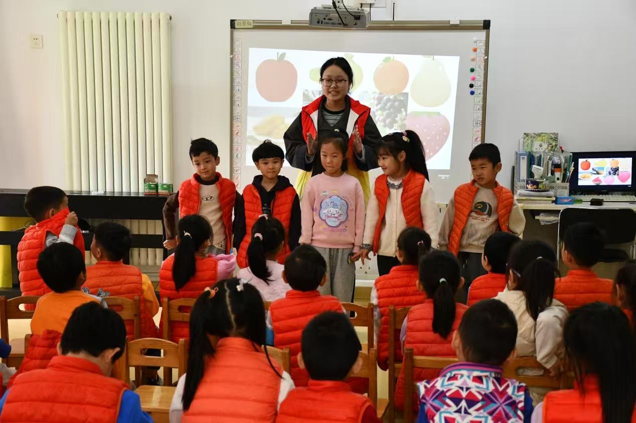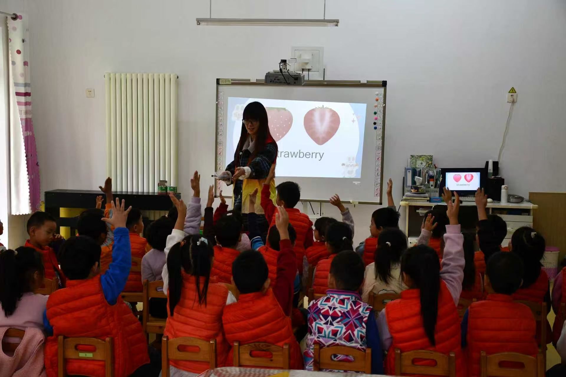 志愿服务团队针对幼儿园小朋友的年龄特点和兴趣偏好,精心设计了一堂主题鲜明的英语课程。课程以“果园识水果”核心环节为脉络,将英语学习巧妙地融入游戏与互动之中,通过实物模型和图片展示苹果、香蕉等常见水果,带领孩子们反复跟读英文单词。孩子们通过触摸模型、模仿发音,在触觉与听觉的双重刺激中强化记忆。